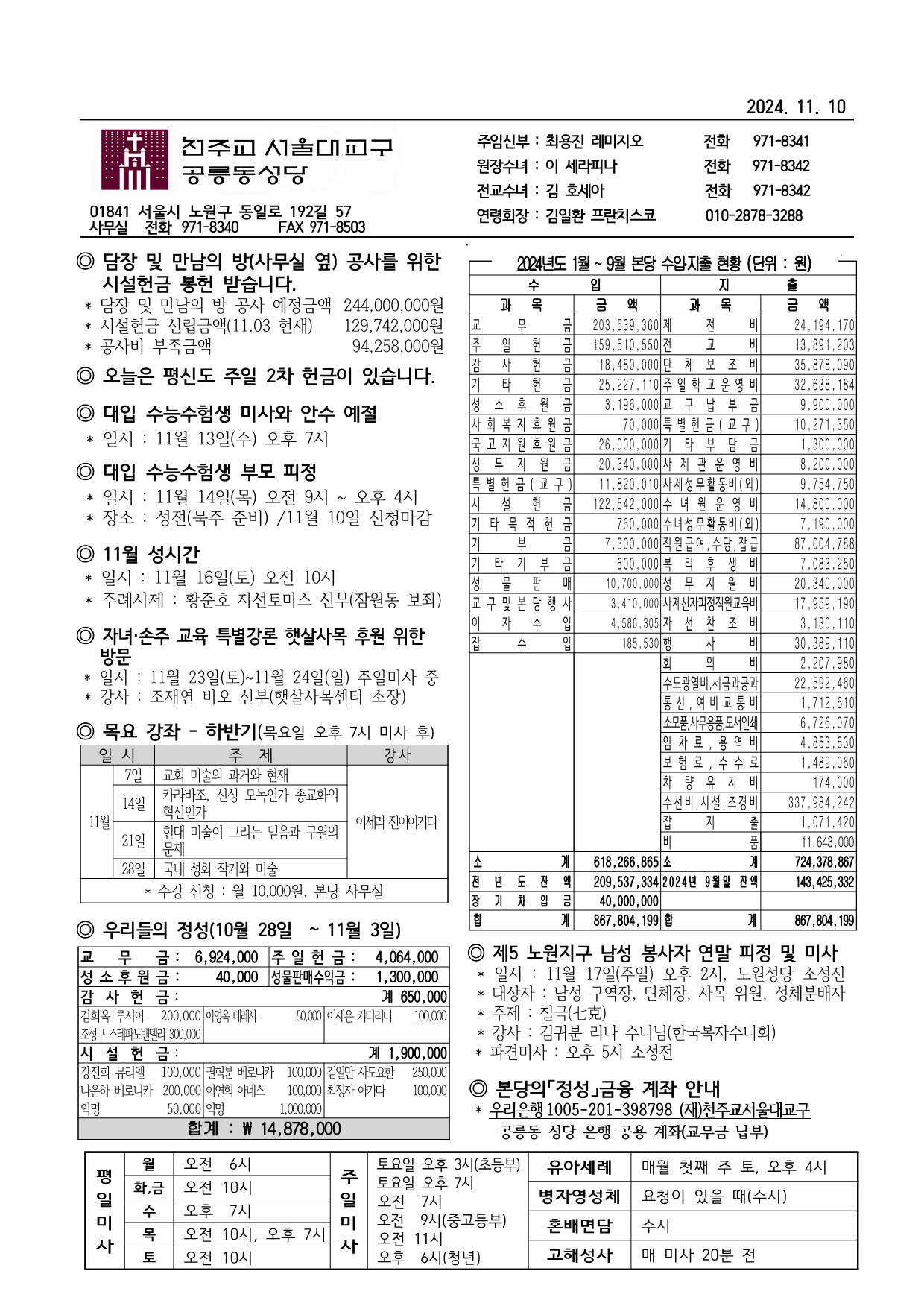 2024 (나해) 연중 제32주일(평신도주일) 주보 및 본당 공지사항