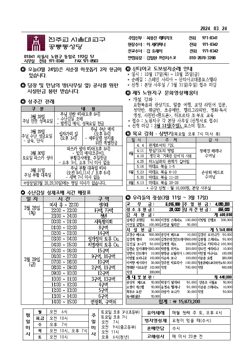 2024년 나해 사순 제3주일 본당 주보 및 공지사…