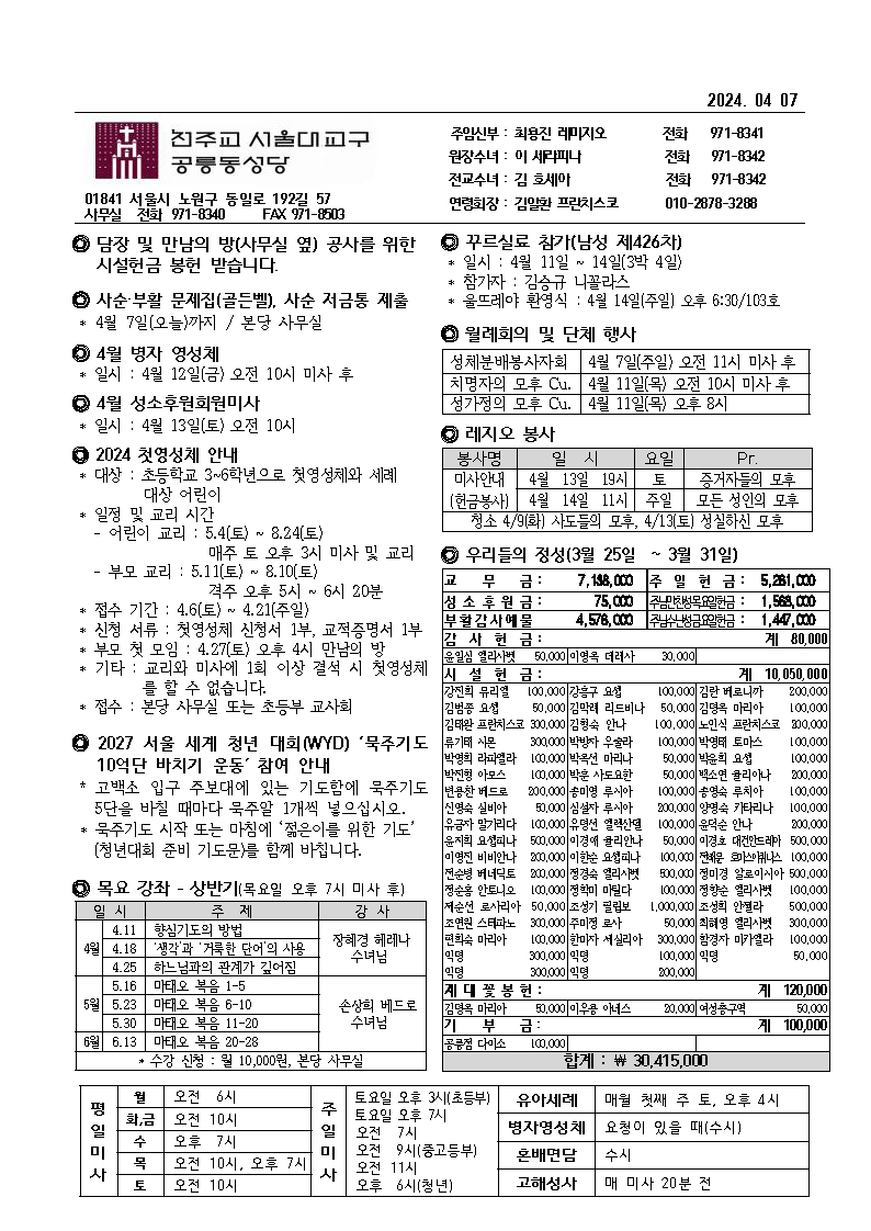 2024년 나해 사순 제3주일 본당 주보 및 공지사…