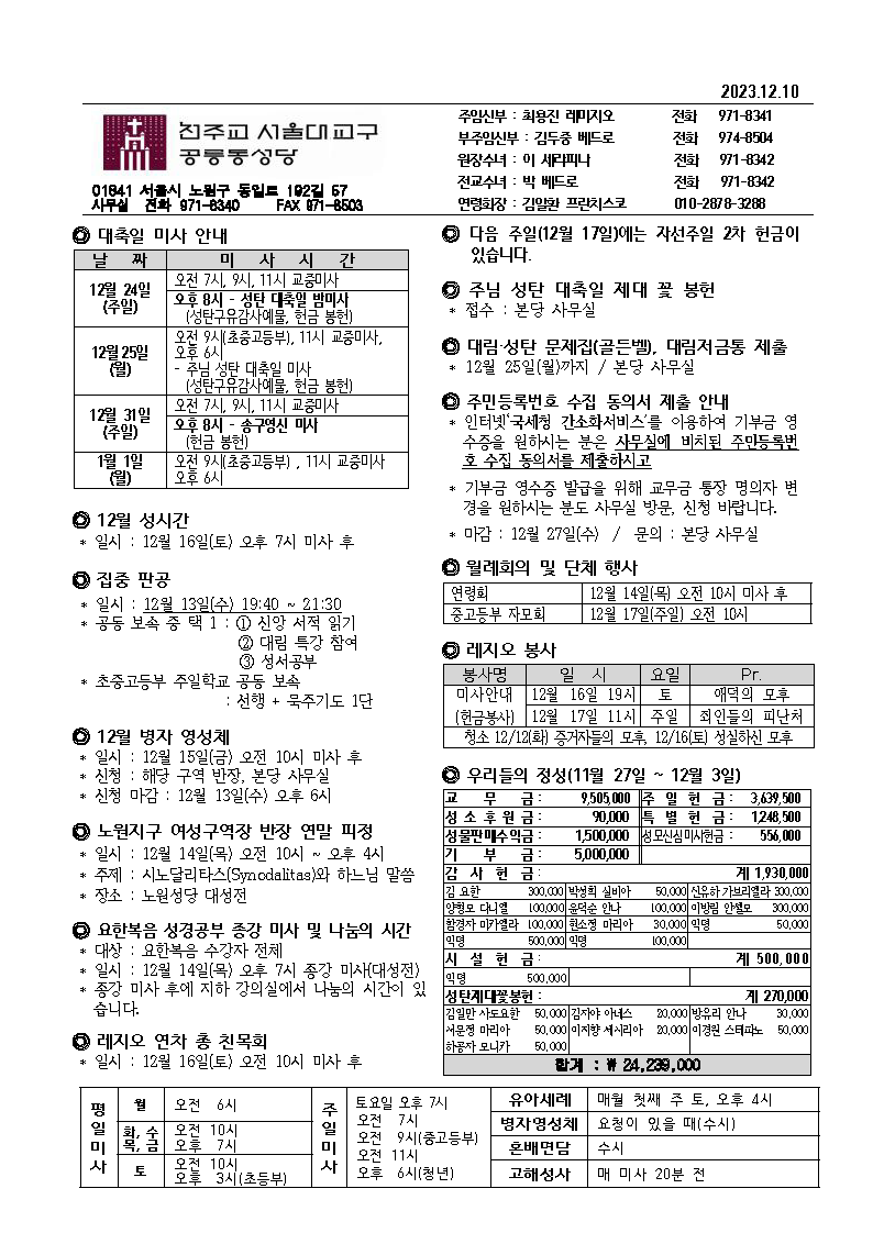 2023.12.17 대림 제3주일 본당 주보 및 공지사항