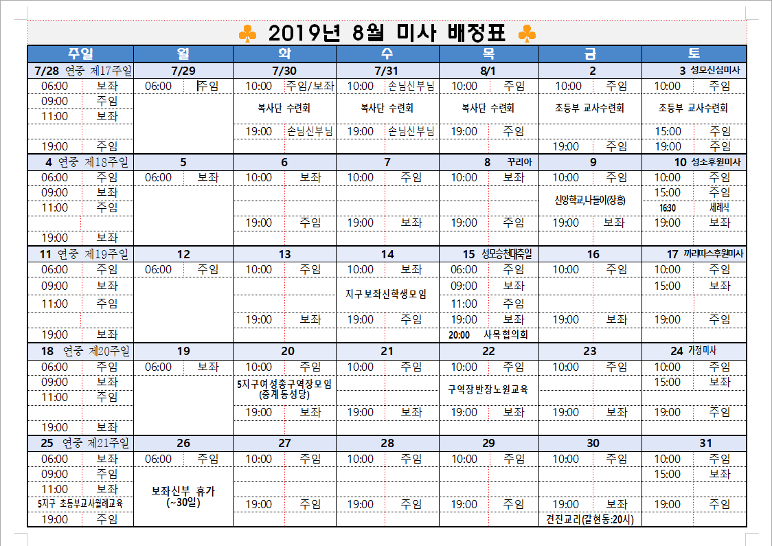 미사배정표8월.hwp (44.0K) [17] DATE : 2019-08-13 05:01:28